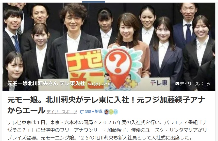 CDTVライブライブにモーニング娘。'26としての恒例の初仕事で登場。(1月1日午前4時頃)