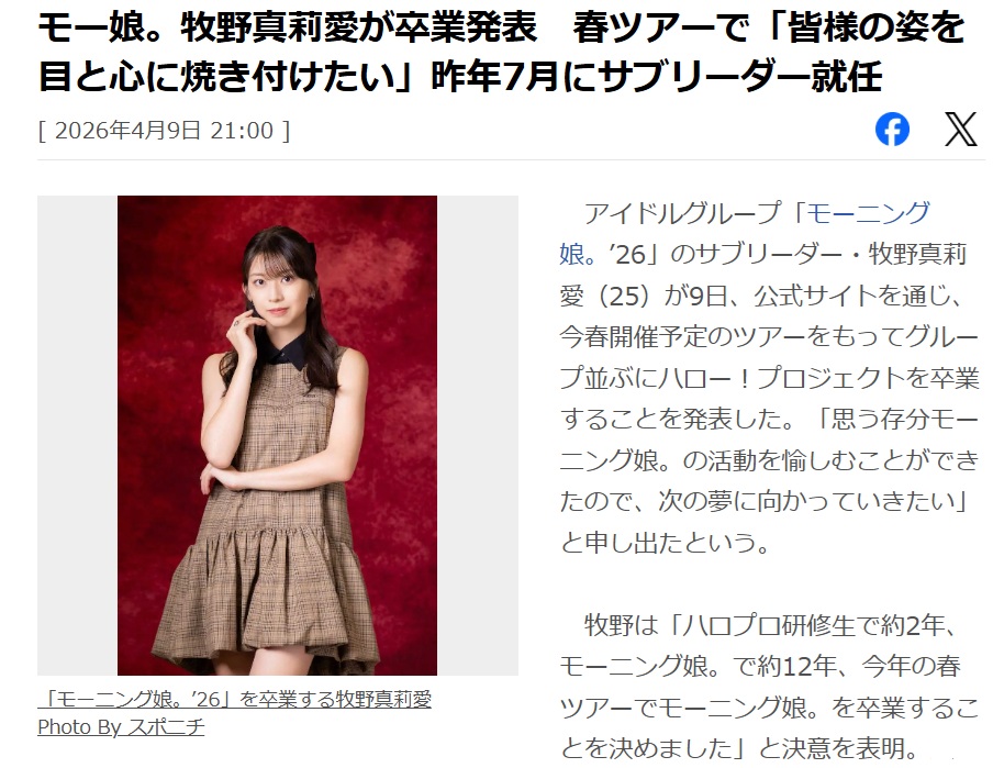 3月20日(土)ひなフェスにてモーニング娘。'26の18期の一人目が発表されました。